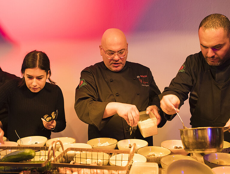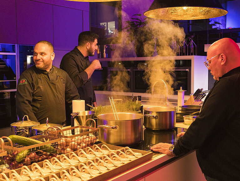 Ideal für Teamevents oder kleinere Firmenfeiern: Beim Kochen mit bis zu 12 Personen gemeinsam mit unseren Profi-Köchen stehen Spaß und Entspannung im Vordergrund. Gönnen Sie sich einen unterhaltsamen Abend und genießen Sie bei der Zubereitung mit frischen, regionalen Zutaten die einzigartige Atmosphäre in unserer Kochfabrik. On top begeistert unsere topmoderne High-End Ausstattung mit innovativer, hochmoderner Technik.